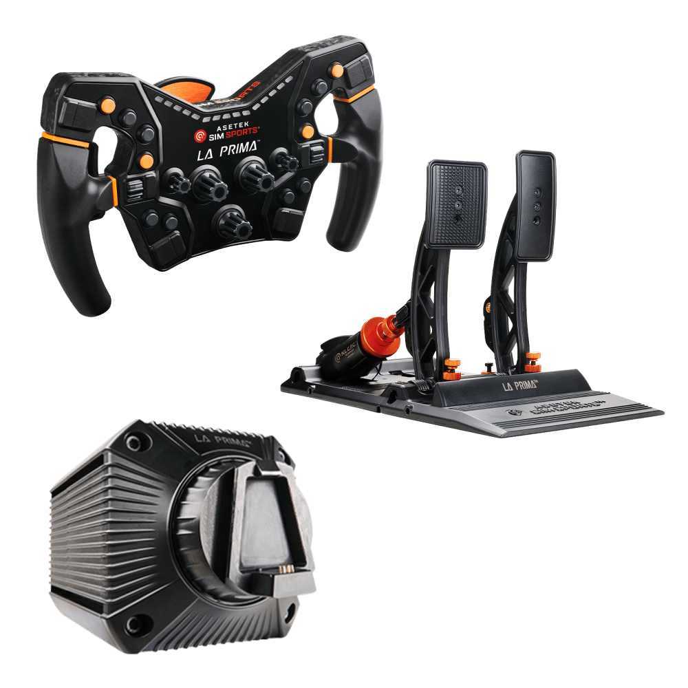- Asetek La Prima Bundle, qui regroupe le volant, la base et le pédalier La Prima : 1.559,99 euros