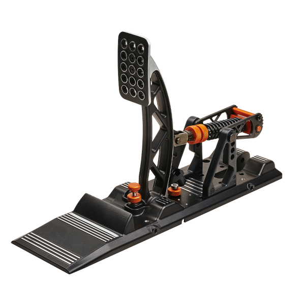 Le La Prima Pedals Brake & Throttle est le pédalier d’entrée de gamme de Asetek SimSports. Il comprend un frein et un accélérateur. Premier modèle, mais attention, il est loin d’être au rabais. Sa pédale de frein propose un load cell (jusqu’à 180 kilos de pression) et la technologie M.L.C.P.C. Cette dernière permet de vous donner un feeling de freinage de vraie voiture, avec un freinage en deux étapes. Elle promet aussi, grâce à un système de débattement fixe, de conserver, en théorie, la dureté des élastomères – et donc de la pédale – dans le temps.