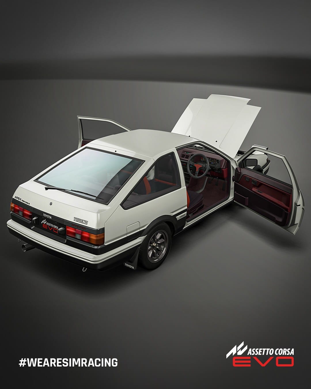 On peut d’ores et déjà vous présenter un modèle qui sera ajouté à la mise à jour 0.5 d’Assetto Corsa EVO : la Toyota Corolla AE86 Sprinter Trueno. En plus, on a même pu la découvrir en images, dans ses deux livrées !