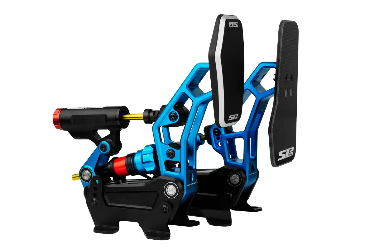Cube Controls, ce ne sont pas que des roues, c’est aussi un pédalier loadcell nommé SP01. Fabriqué tout en aluminium CNC, son capteur peut encaisser jusqu’à 200 kg de charge (ce qui est plutôt excellent). Avec ses ressorts et gommes interchangeable pour personnaliser son expérience de jeu, ce SP01 est disponible en version GT ou F. Moyennant 40 euros de plus. La différence entre les deux versions ? Le modèle F1 se paye le luxe de proposer la plaque de la pédale d’accélération en fibre de carbone, pour un look encore plus racé.
