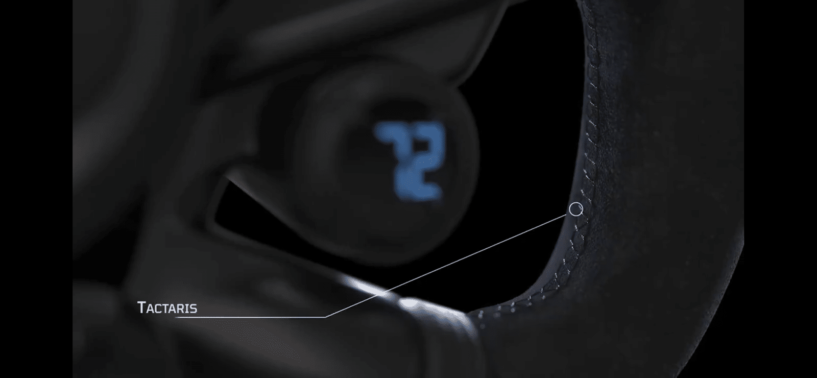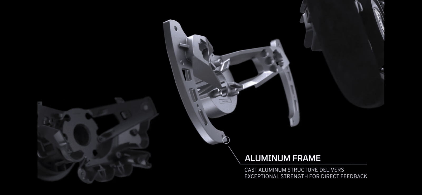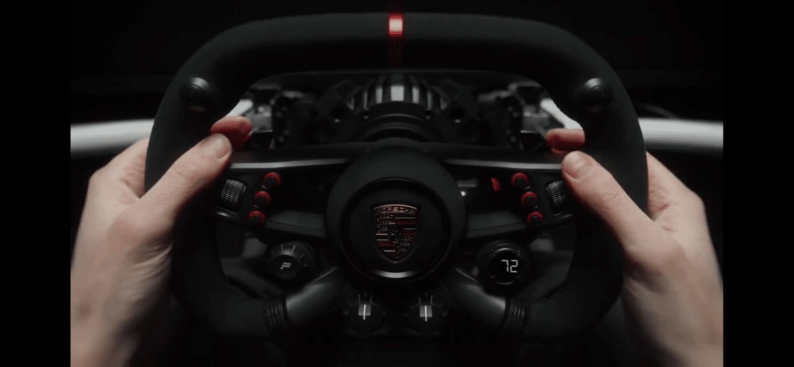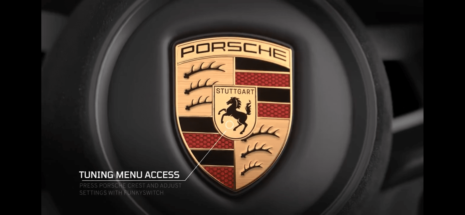 Au niveau des finitions, Fanatec a opté pour un nouveau genre de Suède synthétique, le Tactaris. Il serait plus « durable, confortable et facile à nettoyer ! ». D’autre part, la structure interne est en aluminium, afin d’offrir légèreté et rigidité à l’ensemble. Et pour accéder au menu de configuration ? Il faut appuyer sur le logo Porsche ! Un design pratique et élégant.