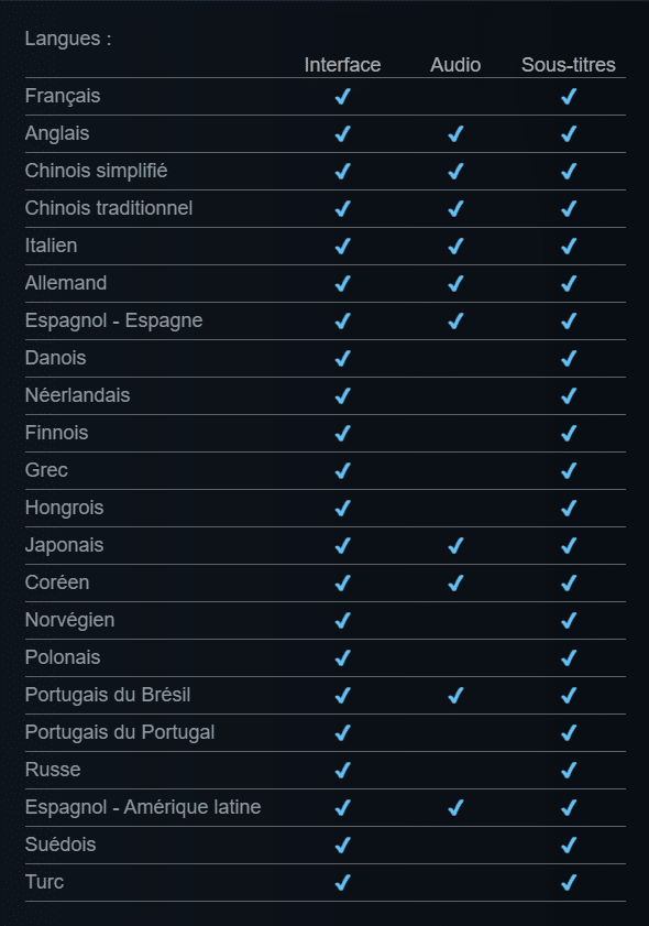 Cependant, après ces annonces, un point précis crée la controverse en France. En effet, on a appris que Forza Horizon 6 ne proposera pas de doublage français, une première pour la série. Pourtant, le jeu ne disposera pas que de voix en anglais, comme on peut le voir sur sa page Steam :
