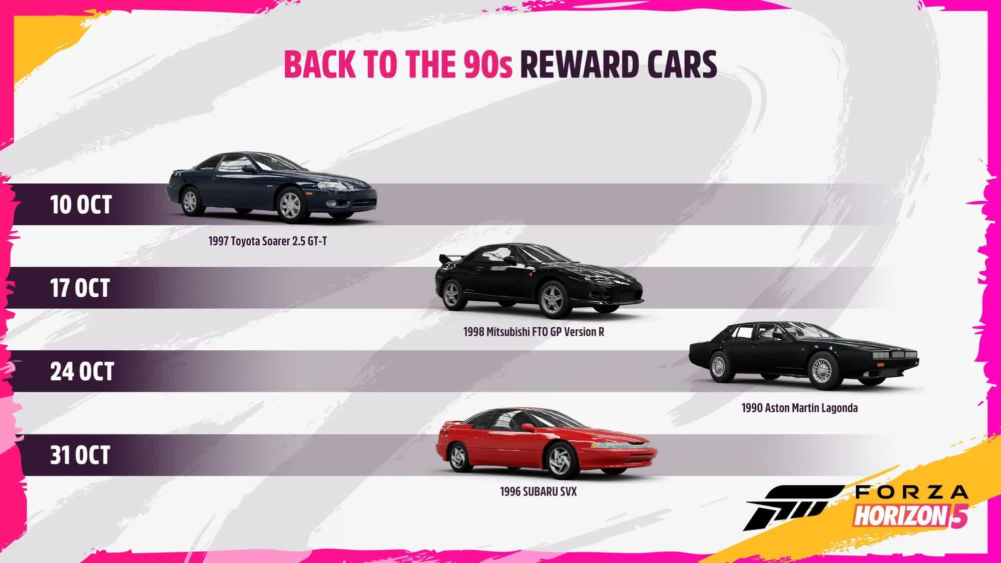 « Back to the 90s » ne se contente pas d’ajouter des voitures et des accessoires. En effet, elle marque aussi le retour de Horizon Backstage. Apparue pour la première fois dans Forza Horizon 4, cette fonctionnalité permet d’acheter des véhicules manqués lors des précédents événements. Les joueurs choisiront chaque semaine entre deux paires de voitures, avec la possibilité de voter pour les modèles à venir. Pour les acquérir, les joueurs devront dépenser une nouvelle monnaie in-game, les Backstage Passes. Chaque semaine, un Backstage Pass sera offert en en récompense de saison. De plus, il sera possible d’en acheter avec des Forzathon Points. Enfin, citons le mode Cache-Cache, qui reçoit cinq nouveaux trophées.
