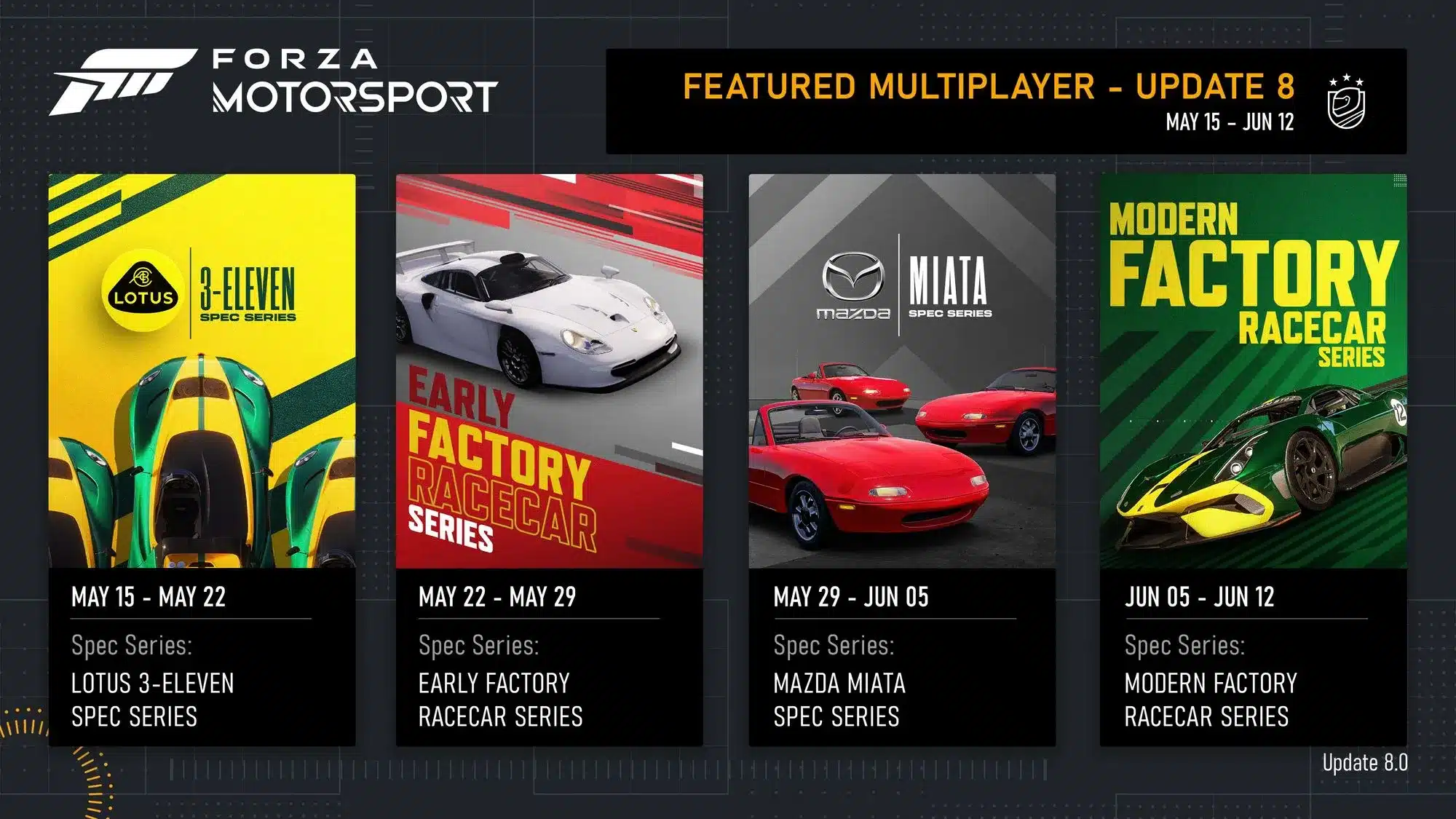 Turn10 continue d’essayer d’améliorer son dernier Forza Motorsport. La mise à jour 8.0 se concentre sur l’expérience multijoueur, mais apporte aussi du nouveau contenu en carrière, et des améliorations de gameplay.