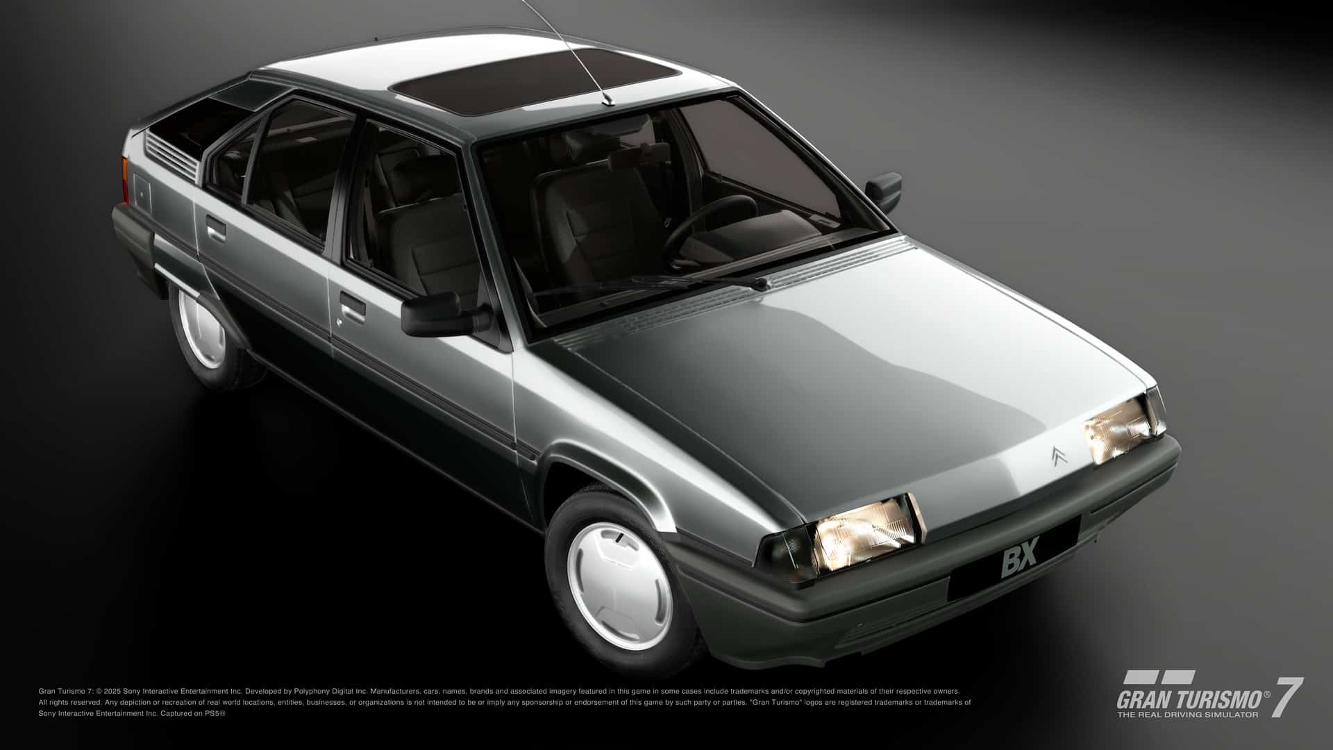La Citroën BX a marqué son époque, en symbolisant pour beaucoup la transition de la marque vers une nouvelle ère sous l’égide de Peugeot. Toutefois, on garde évidemment les suspensions hydropneumatiques typiques de chez Citroën, tout comme ses lignes. Aussi, rappelons que la BX avait été designée par Marcello Gandini. En l’occurrence, GT7 accueille le modèle 19 TRS, qui se distingue par son moteur essence 1,9 L. Elle est disponible chez le concessionnaire de Voitures d’occasion pour 30 000 crédits, et offre plusieurs personnalisations : deux pare-chocs avant, trois options arrière, débadgage, arceaux, crochets de remorquage…