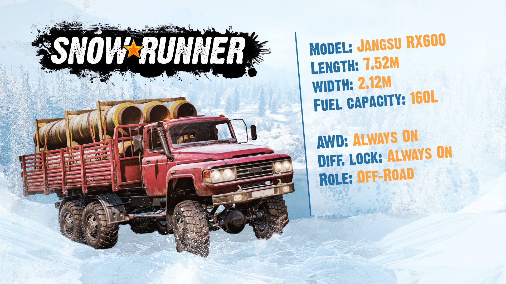 Quant au Jangsu RX600, c’est un tout-terrain léger et agile à six roues. Il excelle dans le transport de carburant et de modules de maintenance, mais peut également acheminer des cargaisons, légères à moyennes. Voire même des charges lourdes, mais il faudra le conduire avec davantage de précaution.