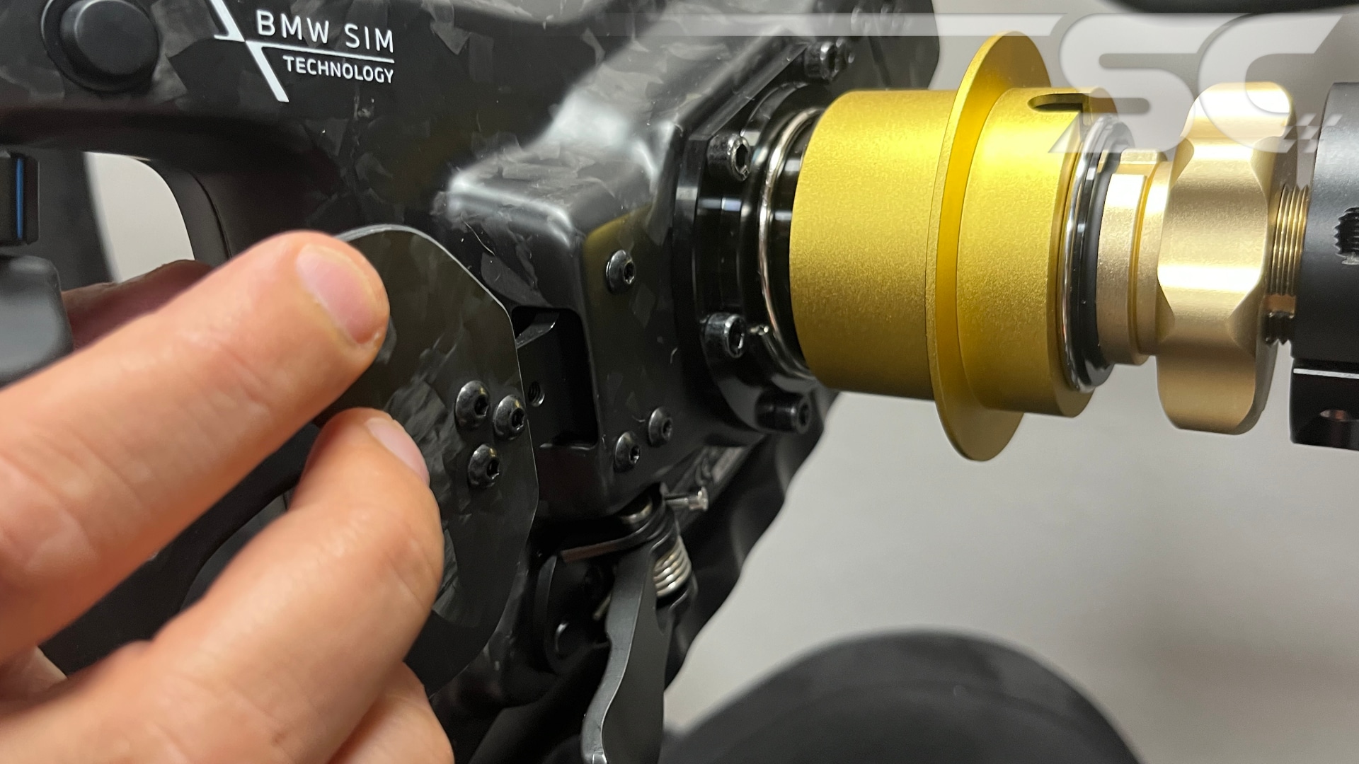 A l’heure de ce test du volant Fanatec Podium Steering Wheel BMW M4 GT3, le QR2 de la marque n’est pas encore sorti. Il nous faudra donc faire avec le QR1. Ce système de fixation de type Quick release, est tout en métal, et sa construction est exemplaire. Mais on sait qu’il souffre d’un défaut de conception (hérité de 10 ans d’exploitation) : suivant la base et le QR que vous avez, un petit jeu peut apparaître créant quelques bruits (et sensations de vibrations) lorsque le retour de force est le plus sollicité. Nous n’avons cependant pas souffert de ce problème lors de notre test.