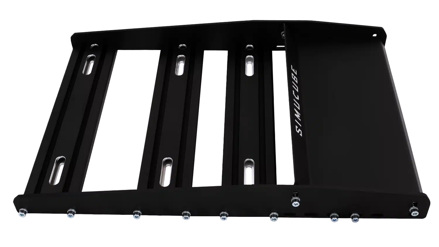 Poursuivons notre test de l’Active Pedal en ouvrant le deuxième carton, celui de la plaque de support du pédalier. Contrairement à de nombreuses marques qui ont fait le choix d’une plaque au sens littéral, Simucube propose un kit façon Ikea. L’intérêt est double : gagner de la place pour le transport, et optimiser le design et les réglages de fixations. Avec une vingtaine de vis, vous allez assembler les plaques latérales, les profilés transversaux et la talonnette. L’opération est simple et rapide, les clés nécessaires sont fournies.