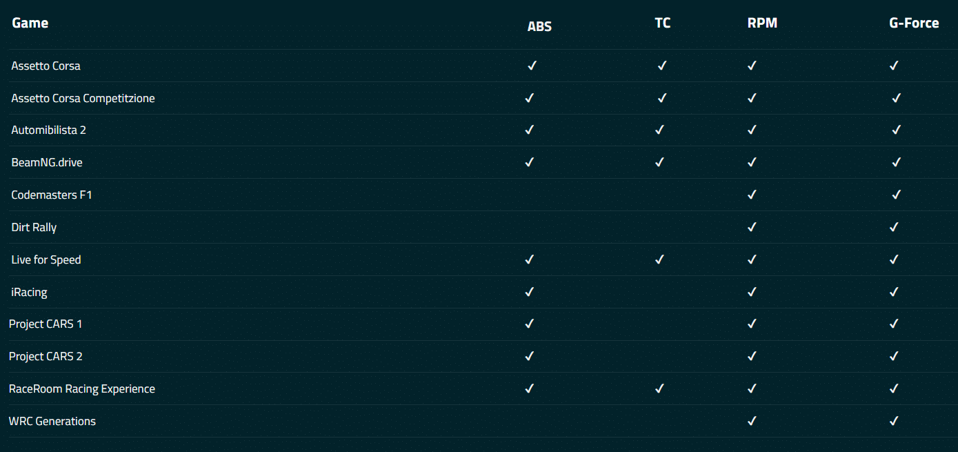 Dernière précision, et pas des moindres : suivant les jeux auxquels vous jouez, tous les effets ne seront peut être pas disponibles. Malheureusement, certains se passent de l’ABS, à l’instar de F1 23, Dirt Rally et WRC Generations. Rfactor 2 n’est lui pas du tout compatible, même si l’équipe Simucube nous a certifié travailler sur le sujet, sans date annoncée. De même, lorsque de nouveaux jeux sortent, il faudra probablement attendre une mise à jour pour un prise en charge des effets.