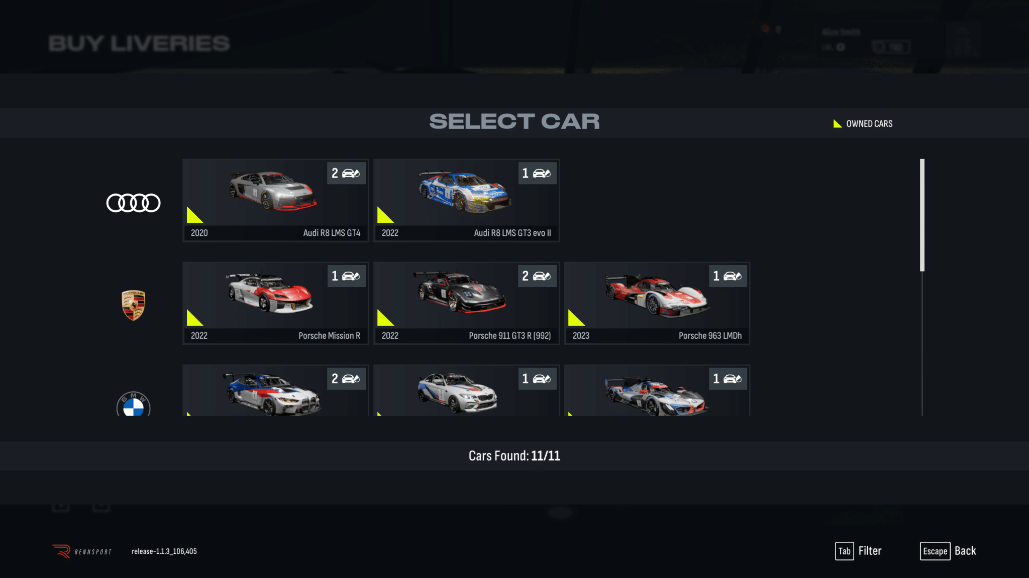 - GT3 (Porsche 992 & 992 Evo, BMW M4, Mercedes-AMG, Audi R8 LMS, McLaren 720S Evo,Aston Martin Vantage, Ford Mustang )