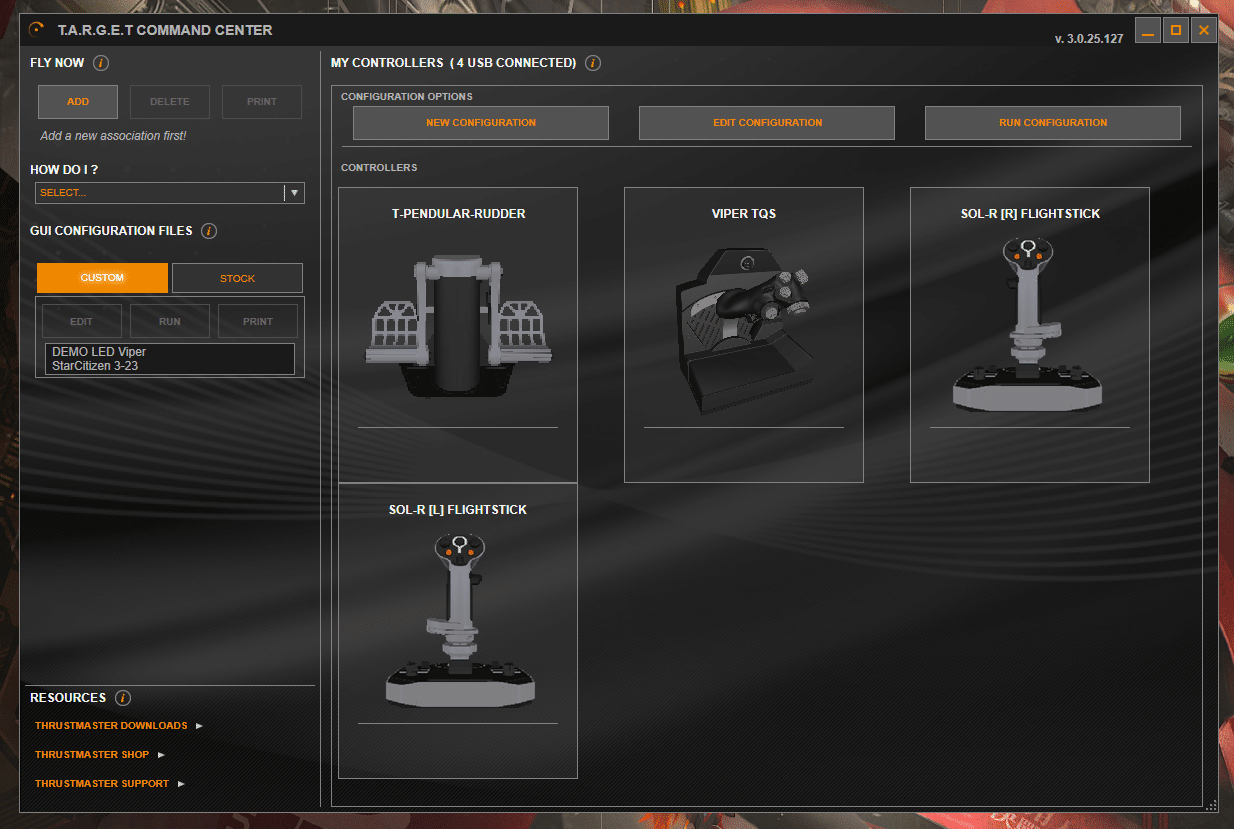 1. Utiliser le flyer Thrustmaster et configurer toutes les touches manuellement dans le jeu. Cela peut être long et fastidieux.