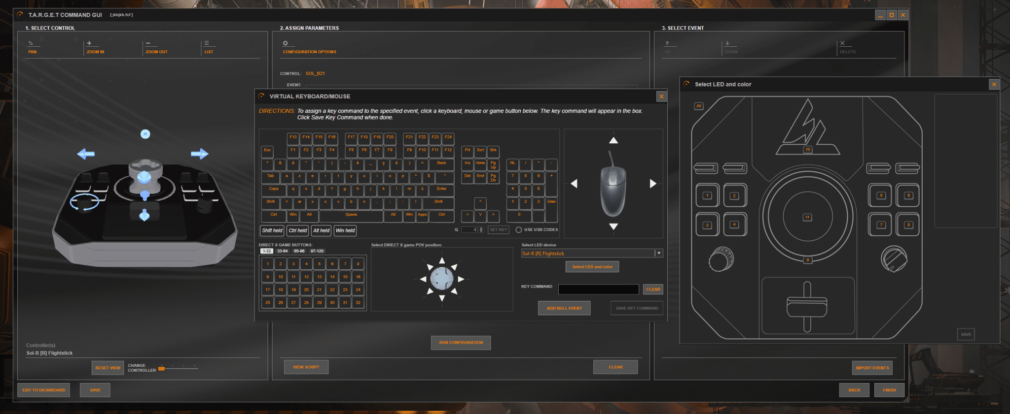Nous avons deux installations à faire. La première, bien entendu, c’est le driver. Pour cela, rien de bien compliqué : procédure habituelle, on redémarre le PC et on branche son (ou ses) joystick(s). Il faut absolument vérifier, lorsque vous accédez au panneau de contrôle de Windows, que vous avez bien cette image et l’onglet LED. J’insiste un peu car, dans mon cas, il a fallu installer une version différente du driver pour que le SOL-R fonctionne correctement. Windows bloquait à la fois certains axes et boutons, et vu qu’il y en a une multitude, c’est dommage de ne pas utiliser le joystick et sa base de manière optimale.