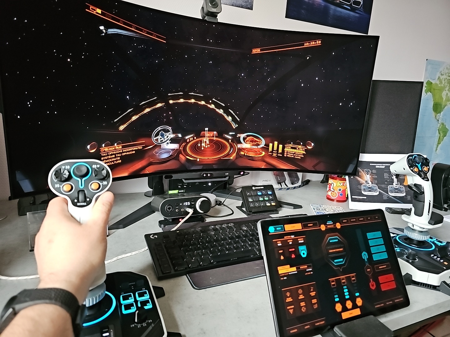 Vous pouvez tout à fait jouer en configuration HOTAS et y prendre beaucoup de plaisir. C’est même un excellent compromis si vous alternez entre simulations aériennes civiles, militaires et les jeux spatiaux. L’essentiel est de pouvoir profiter des 6 degrés de liberté qu’offre la navigation dans l’espace.
