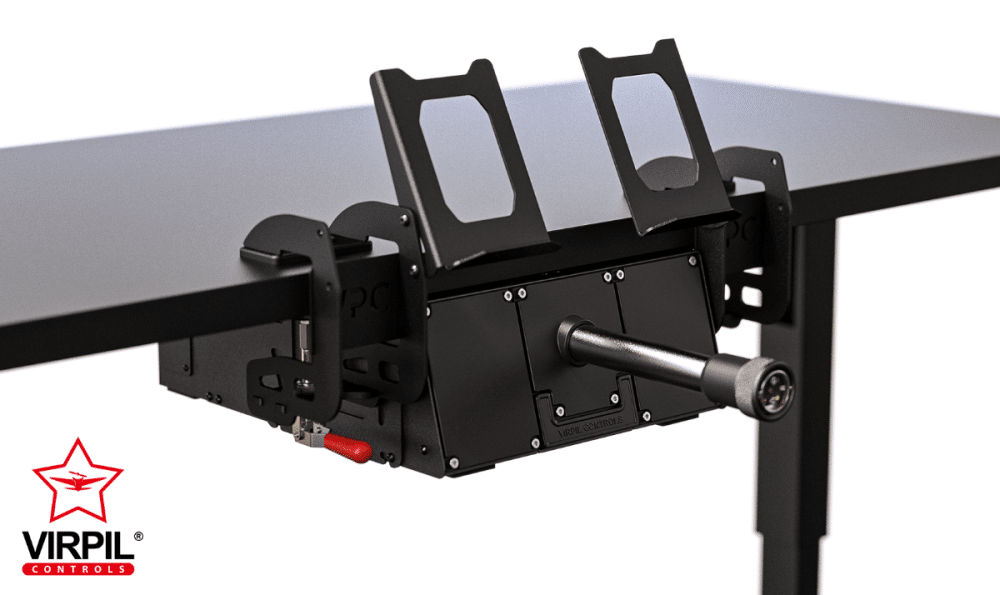 Nos amis lituaniens sont satisfaits de la troisième itération du palonnier R1-Falcon, que nous avons testée en décembre. C’est un excellent modèle, classé parmi le Top 5 des meilleurs palonniers. Grâce à sa conception solide et malgré un petit souci de flexion à mon goût, Virpil propose désormais un jeu de pédales full métal au format adapté aux avions d’ancienne génération et nomme cette version R1-LEGEND. Que cela plaise ou non, c’est une affaire de goût. La sangle est là pour rappeler les vieux YAK. Si l’on possède déjà le R1-Falcon, on peut parfaitement ne commander que le jeu de pédales… Ce que j’ai fait, car j’aime laisser mes pieds sur le palonnier.