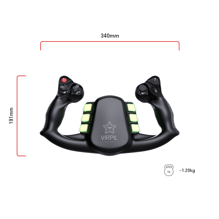 Le constructeur confirme que le design final est désormais figé, après une longue série de modifications structurelles. Les dimensions officielles ont été publiées pour l’ensemble de la gamme, et Virpil souligne un point essentiel : aucun des modules n’est au format « jouet ». Le Vector Yoke affiche des proportions réalistes, proches de celles des commandes d’un véritable poste de pilotage d’avion civil. Une orientation claire vers un outil professionnel pour les simulateurs des aéroclubs locaux. On retrouve donc :