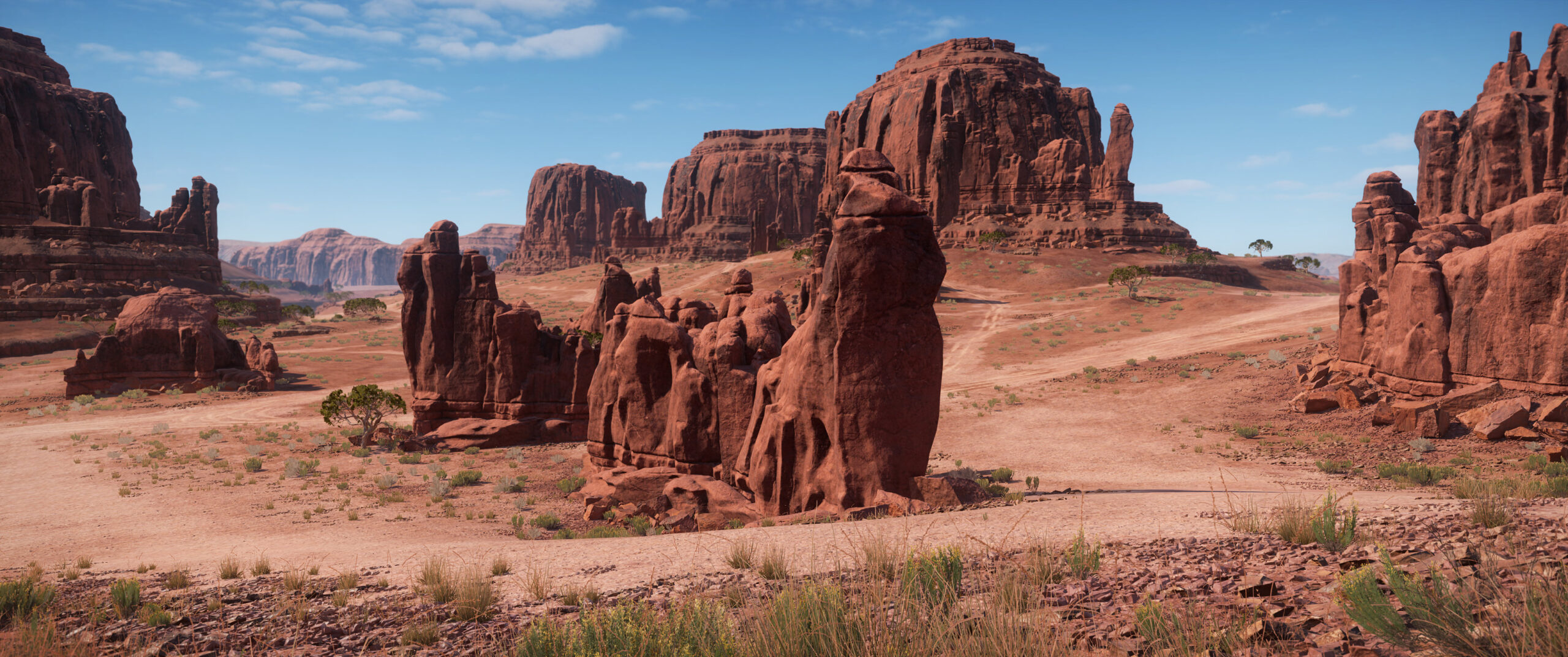Aussi, Wreckfest 2 accueille un autre circuit, directement lié à son nouveau mode de jeu. En effet, cette mise à jour introduit Waypoint Race, un mode inédit qui abandonne les circuits en boucle. Ici, il faut atteindre une série de checkpoints répartis dans un environnement ouvert, sans trajectoire prédéfinie. Les limites du parcours sont simplement les frontières de la carte. De quoi rendre les affrontements encore plus chaotiques, car les joueurs doivent non seulement gérer les collisions, mais aussi trouver leur route vers les marqueurs. Le circuit dédié se situe dans un canyon désertique, avec un départ et une arrivée distincts.